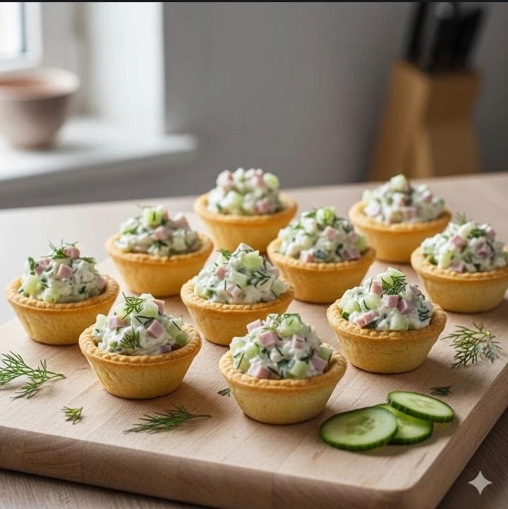 »✨ ⏱10 минут | 210 ккал 🛒Что нужно: 🥩Ветчина — 150 г 🧀Творожный сыр — 150 г 🥒Огурец — 1 шт. 🍞Тарталетки — 10 шт. 🌿Зелень и чеснок 👩🍳Как готовить: Мелко нарежьте ветчину и огурец, смешайте с сыром, тертым чесноком и рубленой зеленью. Наполните тарталетки начинкой и сразу подавайте к столу 😁