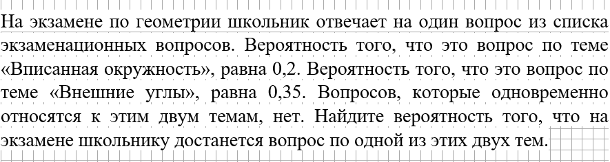 Тогда решение задачи выглядит следующим образом: Привычная школьнику координатная прямая служит хорошей моделью для некоторых вероятностных задач. Эти задачи связаны со случайными величинами, хотя о них ещё нет и речи. Зная, как события связаны между собой и зная вероятность некоторых из них, с помощью числовой прямой можно найти вероятности других событий. Другой тип задач––сравнение вероятностей событий. Если первое событие является подмножеством второго, то вероятность второго события не меньше вероятности первого. Здесь прослеживается аналогия с решением неравенств. Решение Представим решение этой задачи на координатной прямой. Так как в этой задаче речь идет о противоположных событиях, то вероятность, что температура тела будет выше 36,8 или выше представлена на рисунке: Задача №2.2 Решение. Будем рассуждать следующим образом. Если задач больше девяти, значит 10,11,12..... Если задач больше восьми, то 9,10,11......Из одного множества вычитаем второе и получаем, что ровно 9 задач м