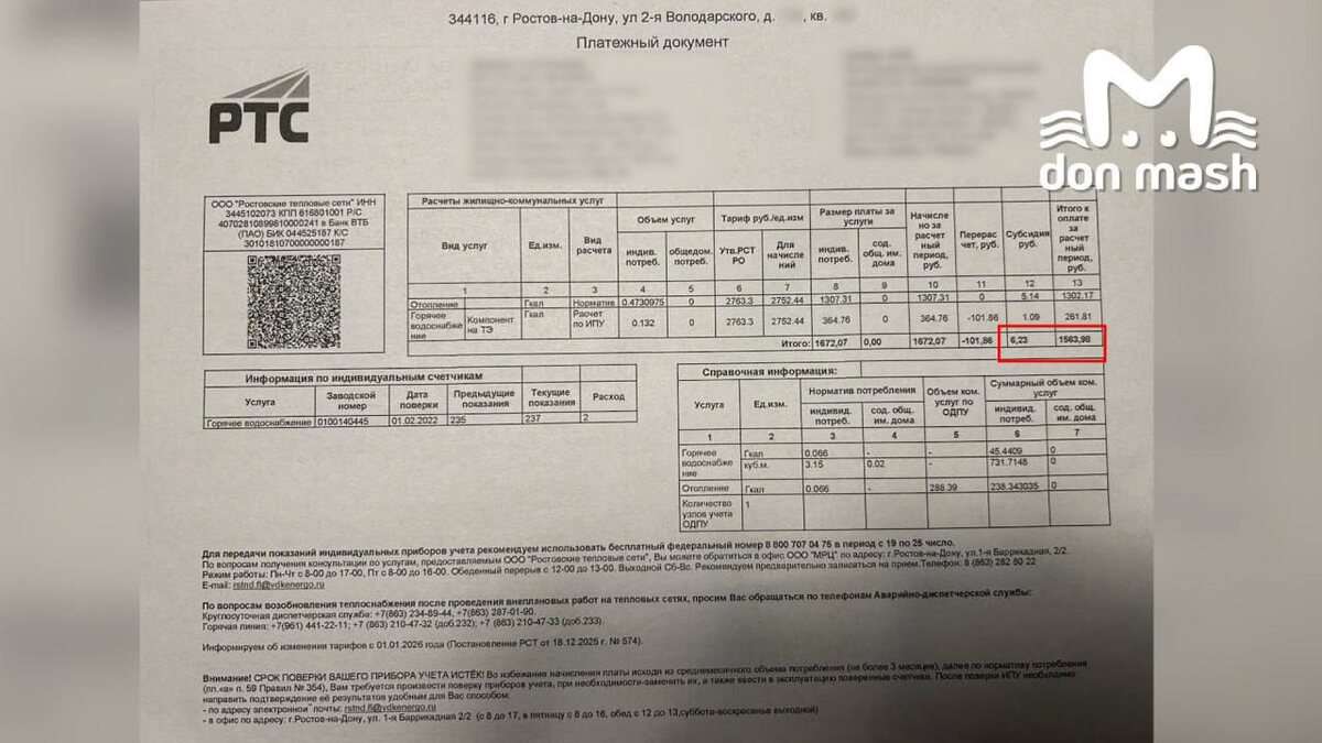 После аварии на ТЭЦ-2 жители остались без тепла на полмесяца. В декабре губернатор потребовал пересчитать платежи. Как пишут СМИ, компания прислала людям по две квитанции — обычную и с перерасчётом. Например, в первой квитанции было 1563 рубля, а после перерасчёта — 1523 рубля. У другого собственника сумма снизилась с 2320 до 2240 рублей. Жители ожидали, что платёж уменьшится вдвое (ведь тепла не было половину месяца), но этого не произошло. 👉🏻Новости №1 в Ростове 💌Прислать новость/фото Ростов Папа теперь в Ⓜ️🅰️❌