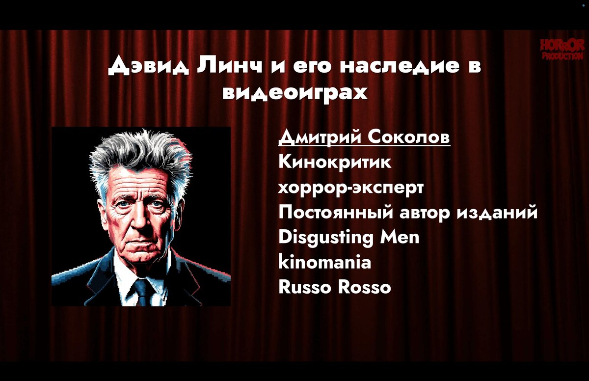 ! Шестая и заключительная лекция со "Дня Дэвида Линча", которое прошло 29 июня 2025 года. Дмитрий Соколов расскажет насколько Дэвид Линч повлиял на игровую индустрию, особенно в Японии. Приятного прослушивания! | MAVE | iTunes | Яндекс.Музыка | Группа ВК | Podcast.ru |