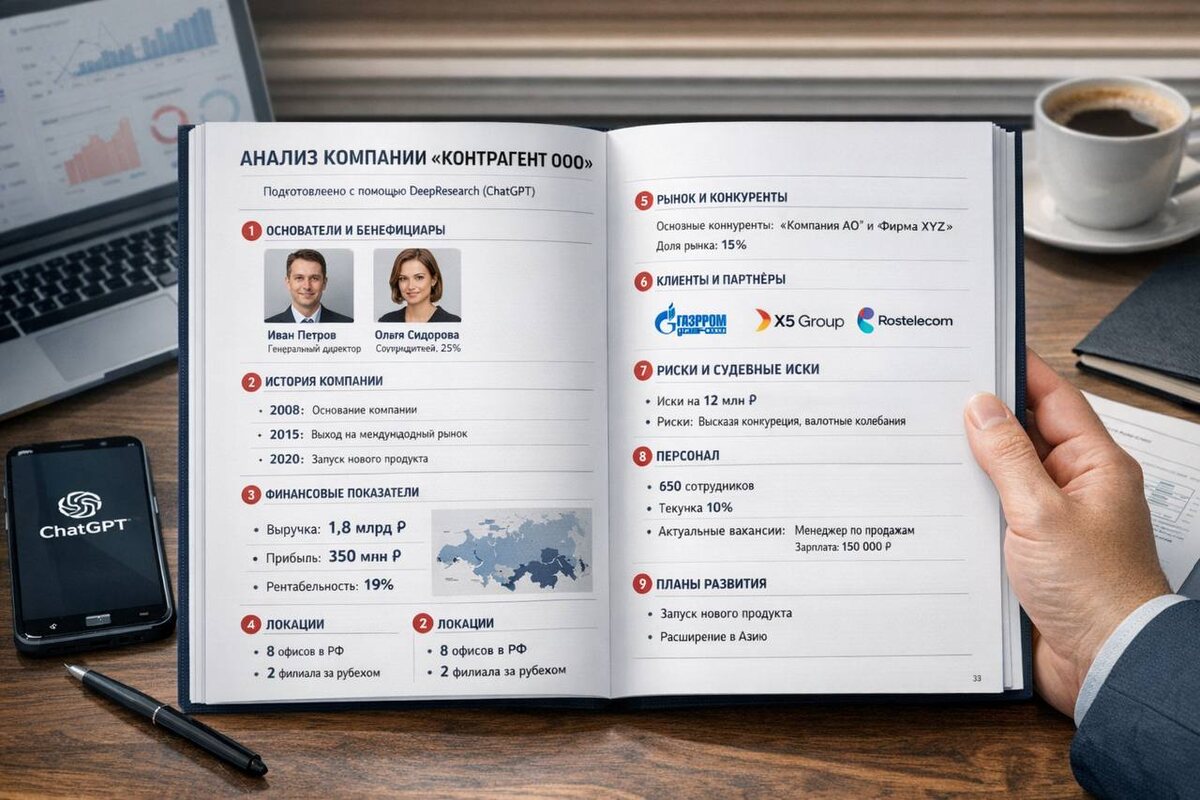 ΠΎΠ΄Π΅: Π§Π΅ΡΠ΅Π· ~30 ΠΌΠΈΠ½ΡΡ Π²Ρ Π·Π½Π°Π΅ΡΠ΅ ΠΎ ΠΊΠΎΠΌΠΏΠ°Π½ΠΈΠΈ Π±ΠΎΠ»ΡΡΠ΅, ΡΠ΅ΠΌ Π±ΠΎΠ»ΡΡΠΈΠ½ΡΡΠ²ΠΎ Π΅Ρ ΡΠΎΡΡΡΠ΄Π½ΠΈΠΊΠΎΠ²: β’ ΠΊΡΠΎ ΡΠ΅Π°Π»ΡΠ½ΡΠΉ Π²Π»Π°Π΄Π΅Π»Π΅Ρ ΠΈ Π±Π΅Π½Π΅ΡΠΈΡΠΈΠ°ΡΡ β’ ΡΡΡΡΠΊΡΡΡΠ° Π±ΠΈΠ·Π½Π΅ΡΠ° ΠΈ ΡΡΠΈΠ΄ΠΈΡΠ΅ΡΠΊΠΈΠ΅ Π»ΠΈΡΠ° β’ ΠΎΠ±ΠΎΡΠΎΡΡ, ΠΏΡΠΈΠ±ΡΠ»Ρ, Π΄ΠΈΠ½Π°ΠΌΠΈΠΊΠ° β’ ΠΊΠ»ΠΈΠ΅Π½ΡΡ ΠΈ ΠΏΠ°ΡΡΠ½ΡΡΡ β’ ΡΡΠ΄Ρ, ΡΠΈΡΠΊΠΈ, Π΄ΠΎΠ»Π³ΠΈ, Π³ΠΎΡ-ΠΊΠΎΠ½ΡΡΠ°ΠΊΡΡ β’ ΠΊΠ°Π΄ΡΠΎΠ²Π°Ρ ΡΠΈΡΡΠ°ΡΠΈΡ ΠΈ ΡΠ΅ΠΊΡΡΠΊΠ° β’ ΡΠ΅Π°Π»ΡΠ½ΡΠ΅ ΠΏΠ»Π°Π½Ρ ΡΠ°Π·Π²ΠΈΡΠΈΡ ΠΠ°ΠΊ ΡΠ΄Π΅Π»Π°ΡΡ ΡΠ°ΠΊΠΎΠΉ ΠΎΡΡΡΡ: Π¨Π°Π³ 1 ΠΡΠΊΡΠΎΠΉ ChatGPT (ΠΈΠ»ΠΈ Gemini / Claude) ΠΈ Π²ΠΊΠ»ΡΡΠΈ ΡΠ΅ΡΠ΅Π· + ΡΠ΅ΠΆΠΈΠΌ Deep Research. Π¨Π°Π³ 2 ΠΡΡΠ°Π²Ρ Π½Π°Π·Π²Π°Π½ΠΈΠ΅ ΠΊΠΎΠΌΠΏΠ°Π½ΠΈΠΈ, ΠΠΠ ΠΈΠ»ΠΈ ΡΠ°ΠΉΡ. Π¨Π°Π³ 3 Π‘ Π½ΠΎΠ²ΠΎΠΉ ΡΡΡΠΎΠΊΠΈ Π²ΡΡΠ°Π²Ρ ΡΡΠΎΡ ΠΏΡΠΎΠΌΠΏΡ β¬οΈ Π’Ρ β Π°Π½Π°Π»ΠΈΡΠΈΠΊ-ΠΈΡΡΠ»Π΅Π΄ΠΎΠ²Π°ΡΠ΅Π»Ρ. Π’Π²ΠΎΡ Π·Π°Π΄Π°ΡΠ° β ΡΠΎΠ±ΡΠ°ΡΡ ΠΈ ΠΏ