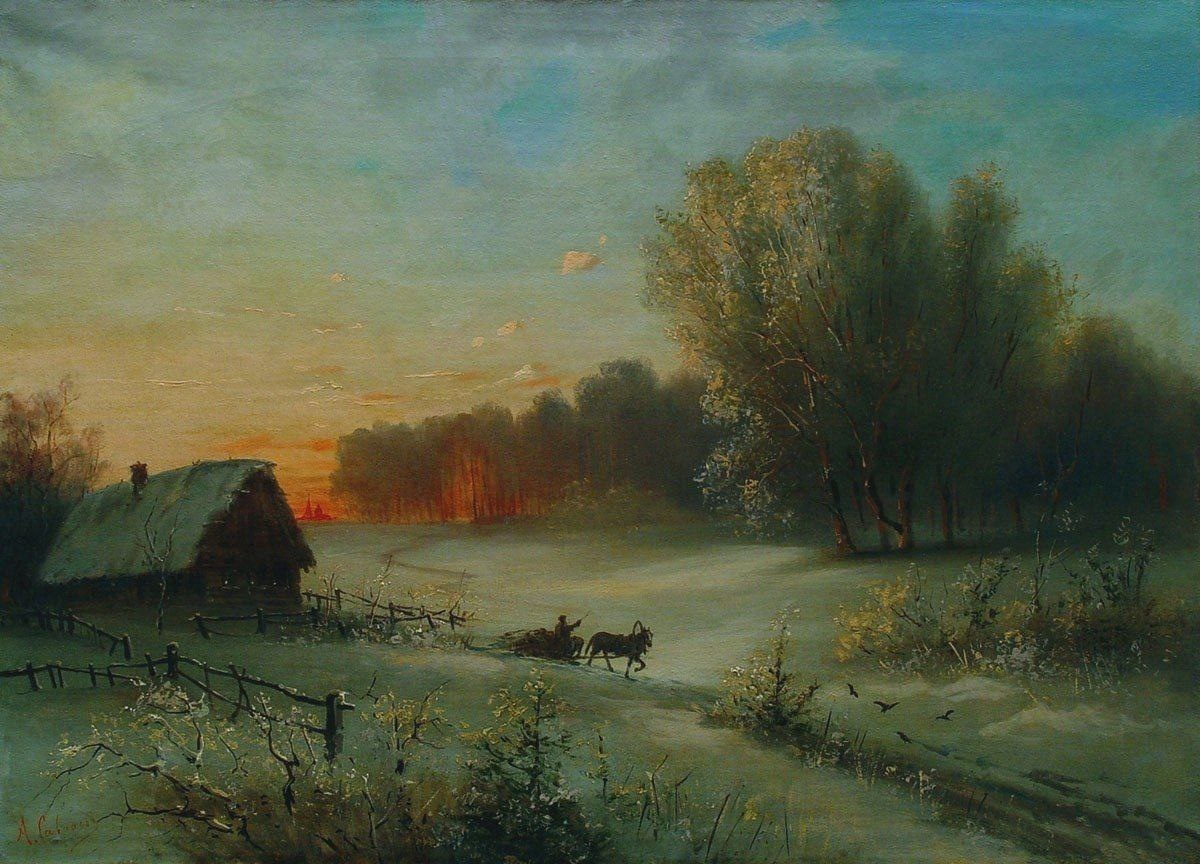 "Зимний пейзаж с санями", 1880 г.