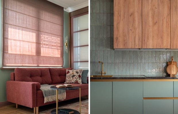 Дизайнер совместила удобство, эстетику и индивидуальные решения — каждую из этих идей хочется унести с собой Интерьер этой квартиры в ЖК «UNO.Старокоптевский» — пример того, как на 42 квадратных метрах можно создать функциональное и выразительное пространство. Дизайнер Елена Марченко оформила ее для сдачи в аренду, но подошла к проекту как к личному: учла сценарии жизни, сделала атмосферу теплой и обжитой и продумала зонирование до мелочей. Вот 7 приемов, которые легко применить и в других интерьерах. Базовая палитра квартиры нейтральная: мягкие бежевые стены, дерево в отделке и ламинат теплого тона. Но акценты здесь задают не яркие стены, а мебель и техника: например, насыщенно-брусничный холодильник стал центром кухни и задал направление для подбора декора. Вместо капитального разделения кухни-гостиной и спальни дизайнер установила деревянную раздвижную перегородку: она сохраняет ощущение открытости, пропускает свет и при этом создает приватность. Отличный прием, если хочется выделит