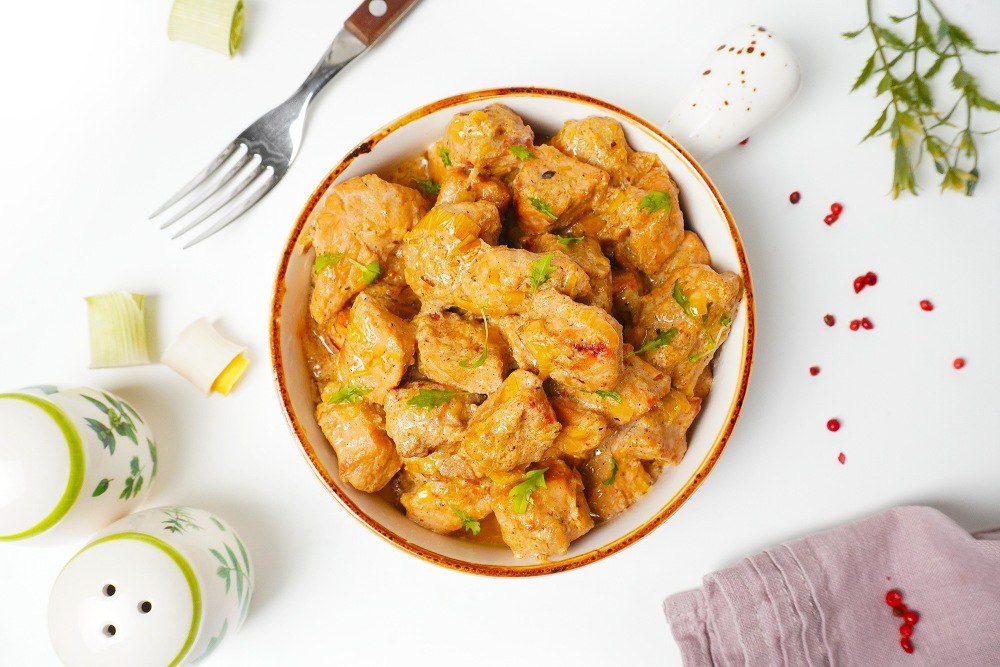 📖 Ингредиенты: * Свинина (вырезка) — 800 г * Сметана (20%) — 300 г * Лук репчатый — 350 г * Лук-порей — 150 г (можно заменить на репчатый) * Масло растительное — 70 мл * Вода — 150 мл * Приправа для свинины — 2 ч.л. * Соль — 0.5 ч.л. или по вкусу 👨🍳 Приготовление: 1. Мясо нарежьте кубиками. Лук нарежьте крупно. 2. В глубокой сковороде хорошо разогрейте масло. Обжарьте свинину порциями на сильном огне до румяной корочки со всех сторон. Переложите мясо в тарелку. 3. В эту же сковороду добавьте лук и обжаривайте до мягкости и золотистости. 4. Верните мясо к луку, влейте воду. Накройте крышкой и тушите на среднем огне около 30 минут, пока мясо не станет мягким. 5. Смешайте сметану с приправой. Влейте соус в сковороду, добавьте соль, аккуратно перемешайте и прогрейте на медленном огне 1-2 минуты. 6. Дайте блюду немного настояться под крышкой перед подачей. Подавайте с любым любимым гарниром. Приятного аппетита! #Свинина #Мясо #Ужин #Сковорода #СметанныйСоус h