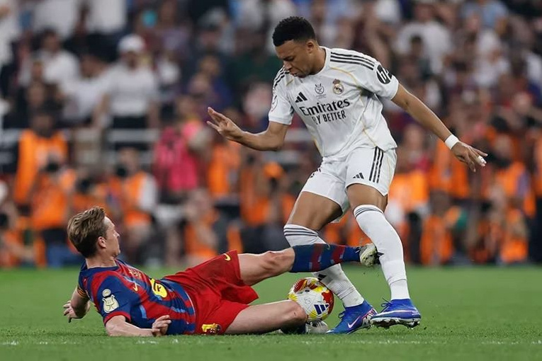 Французский нападающий мадридского "Реала" Килиан Мбаппе увел футболистов команды с поля во время награждения "Барселоны" Суперкубком Испании. Об этом сообщает газета Marca. Встреча прошла в Саудовской Аравии и завершилась победой "Барселоны" со счетом 3:2. После получения медали за второе место французский нападающий дал знак товарищам по команде покинуть поле и отправиться в раздевалку. Мбаппе вышел на замену на 76-й минуте и провел первый матч после травмы связок колена. Суперкубок Испании проводится с 1982 года. Рекордсменом турнира по числу побед является "Барселона" (16). "Реал" занимает второе место по этому показателю с 13 титулами.