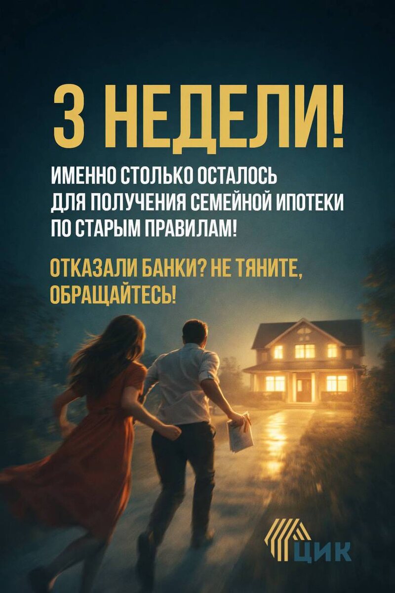 ! До изменений по семейной ипотеке, напоминаем, осталось три недели. 🔔Важно! Для тех семей, в которых один из супругов получил ранее льготный кредит (после 23.12.2023г) получение семейной ипотеки будет невозможно! Тем семьям, где второй супруг с плохой кредитной историей или, что критично- банкрот, получение семейной ипотеки будет так же невозможно или очень -очень сложно. Если есть желание успеть - оперативно принимаем решение. 🔔Отказывают банки - пишите.