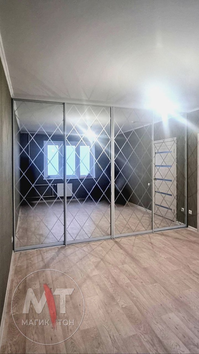 )✨ Представьте себе: четыре зеркальные двери, которые не просто отражают вас, но и создают ощущение простора и света в вашей комнате☀. А теперь добавьте к этому изысканный пескоструйный рисунок под фацет! Это не просто узор, это настоящее произведение искусства, которое придает дверям глубину, объем и неповторимый шарм. Но красота – это только половина дела ☝. Настоящая гардеробная – это, прежде всего, идеальная организация пространства. И наш шкаф-купе справляется с этой задачей на отлично! Что же скрывается за этими зеркальными дверями? 💡Продуманные полки: для аккуратного размещения сложенной одежды, сумок, коробок с аксессуарами. Никакого хаоса, только идеальный порядок! 🛠Удобные штанги: для платьев, рубашек, брюк и пальто. Все будет висеть на своих местах, не мяться и всегда быть под рукой. ⚡Функциональные ящики: идеальное решение для хранения нижнего белья, носков, шарфов, перчаток и других мелочей, которые требуют особого внимания. Такой шкаф-купе – это не просто мебель,