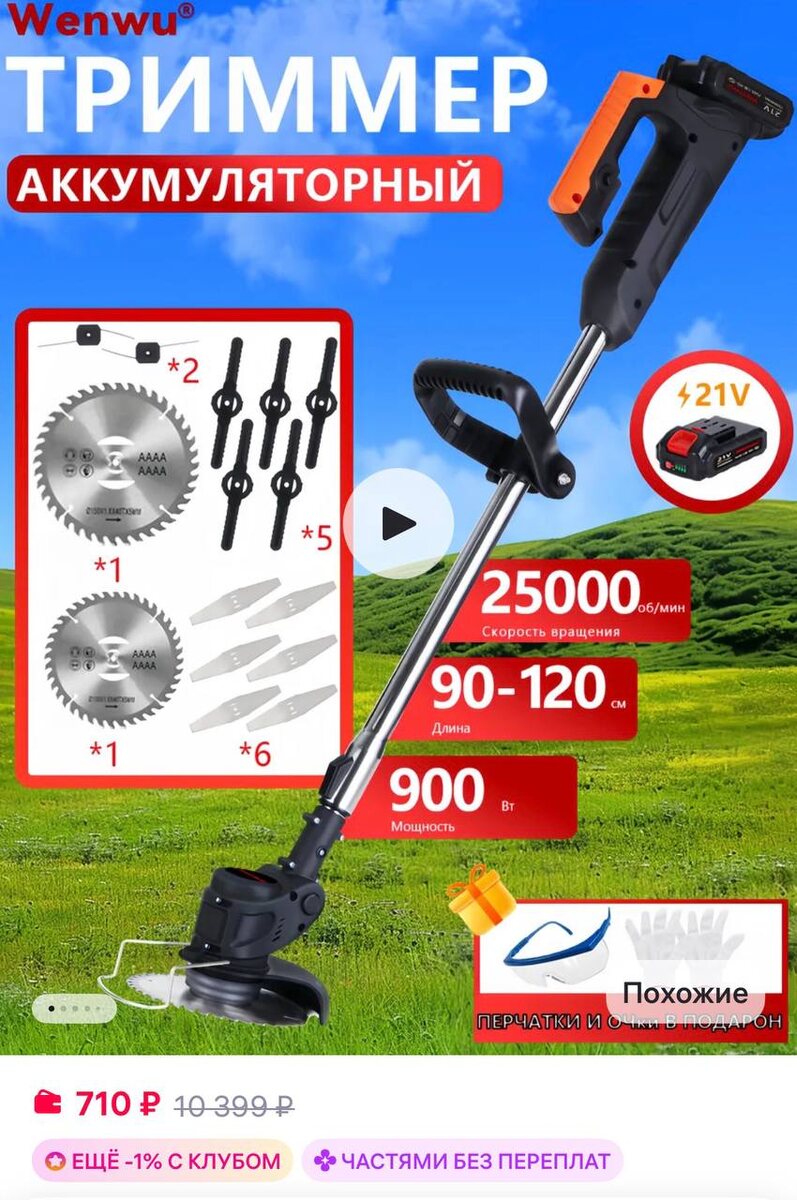 😦😃😀 Wenwu Садовый ручной триммер для травы аккумуляторный7500 мАч https://www.wildberries.ru/catalog/169579887/detail.aspx?size=281744057 ✅ Канал по скидкам 🔣 Бот с промокодами
