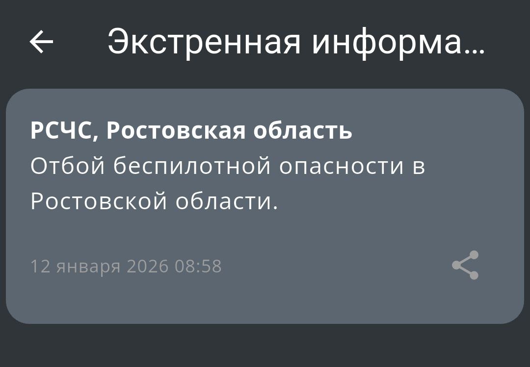 ❗В Ростовской области объявлен отбой беспилотной опасности