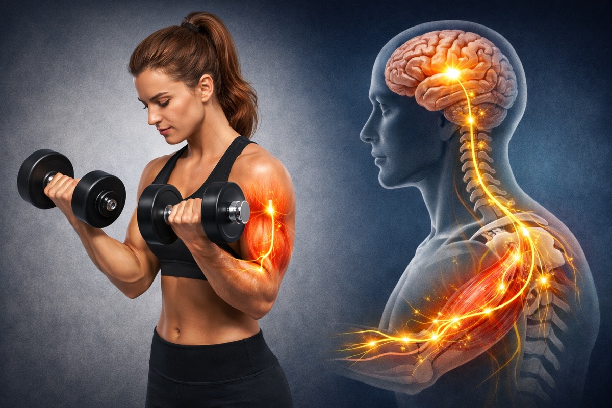 Если вы наблюдали как профессионал на соревнованиях "включает" конкретную мышцу, заставляя ее буквально "танцевать" под кожей, вы видели идеальную нейромышечную связь в действии. Многие люди в зале годами "поднимают вес", но не "тренируют мышцы". Разница колоссальна. Развитая нейромышечная связь это ваш прямой проводник от мозга к мышечным волокнам, позволяющий нагружать целевую мышцу максимально эффективно, минимизируя нагрузку вспомогательными мышцами. На физиологическом уровне- это способность центральной нервной системы эффективно задействовать и синхронизировать работу мотонейронов и группы мышечных волокон в целевой мышце для выполнения конкретного движения. Проще говоря когда вы решаете согнуть руку- мозг посылает электрический сигнал через спинной мозг к мотонейронам бицепса. Чем точнее и мощнее этот сигнал тем больше мышечных волокон одновременно и согласованно сократится. У новичка сигнал слабый и неточный, к работе подключаются плечи, спина, корпус. У мастера наоборот молние