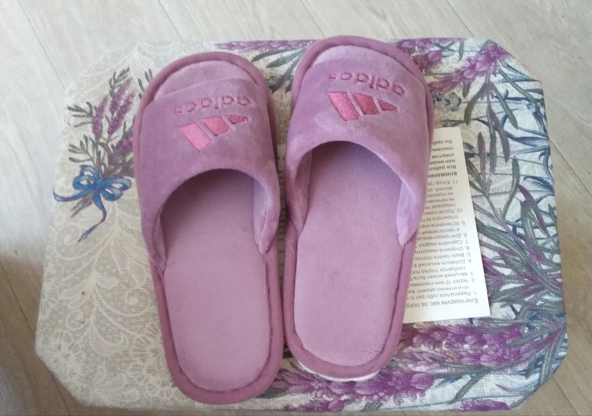 Прогулялась по улице и зашла в эконом магазин, купила новые тапки. Старые у меня совсем развалились, покупала их за 250 рублей, они очень тонкие. Без тапок я не люблю дома ходить, пришлось покупать новые.