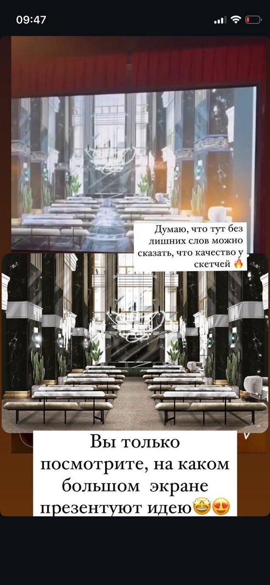 💫 У меня так же было. Я узнала, что классный дизайнер из Москвы ищет визуализатора для проекта CLUB500 Дмитрия Портнягина (я тогда следила за ним) и я прям загорелась нарисовать для них скетчи. Нашла через Яндекс студию дизайна, написала руководителю Юлии. Расписала ей как будет выглядить наше сотрудничество и показала скетчи. Она подумала, согласовала. Когда увидела масштаб работы, я конечно испугалась 🥺 но было очень интересно 🔥 И мои скетчи презентовали на большом экране.