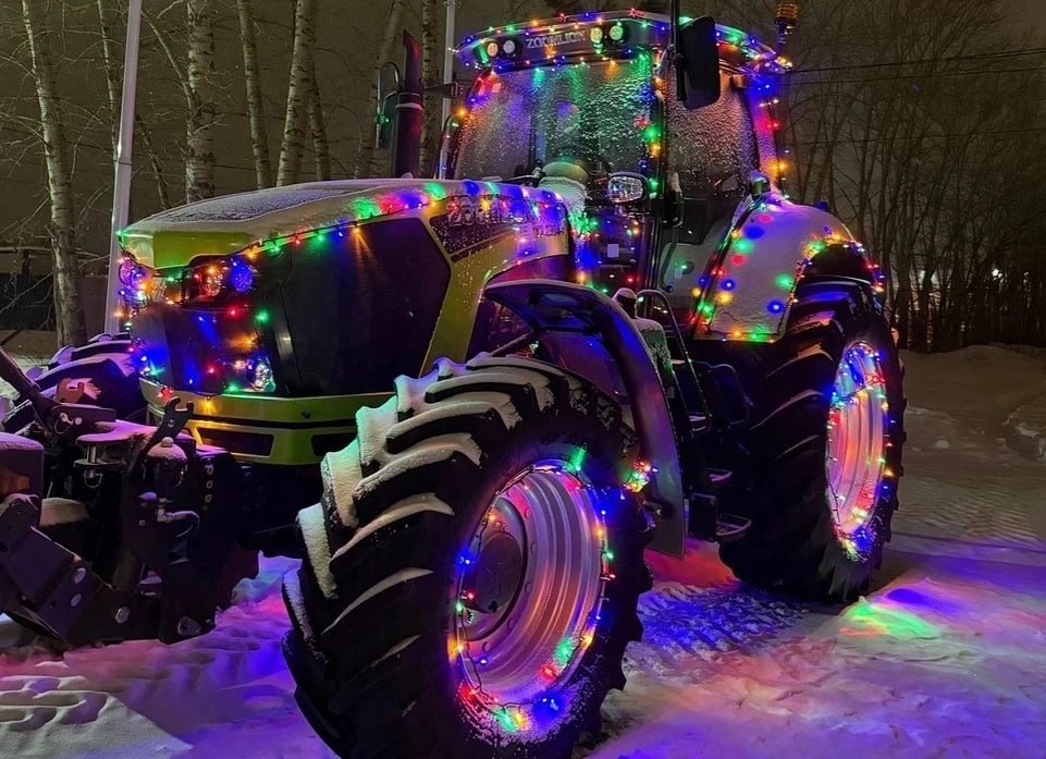 🎄 На украшение «новогоднего трактора» в городе Обь ушло 50 метров гирлянд