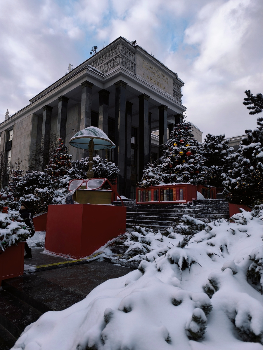 Новогодний вайб на лестнице библиотеки имени Ленина 2025-2026