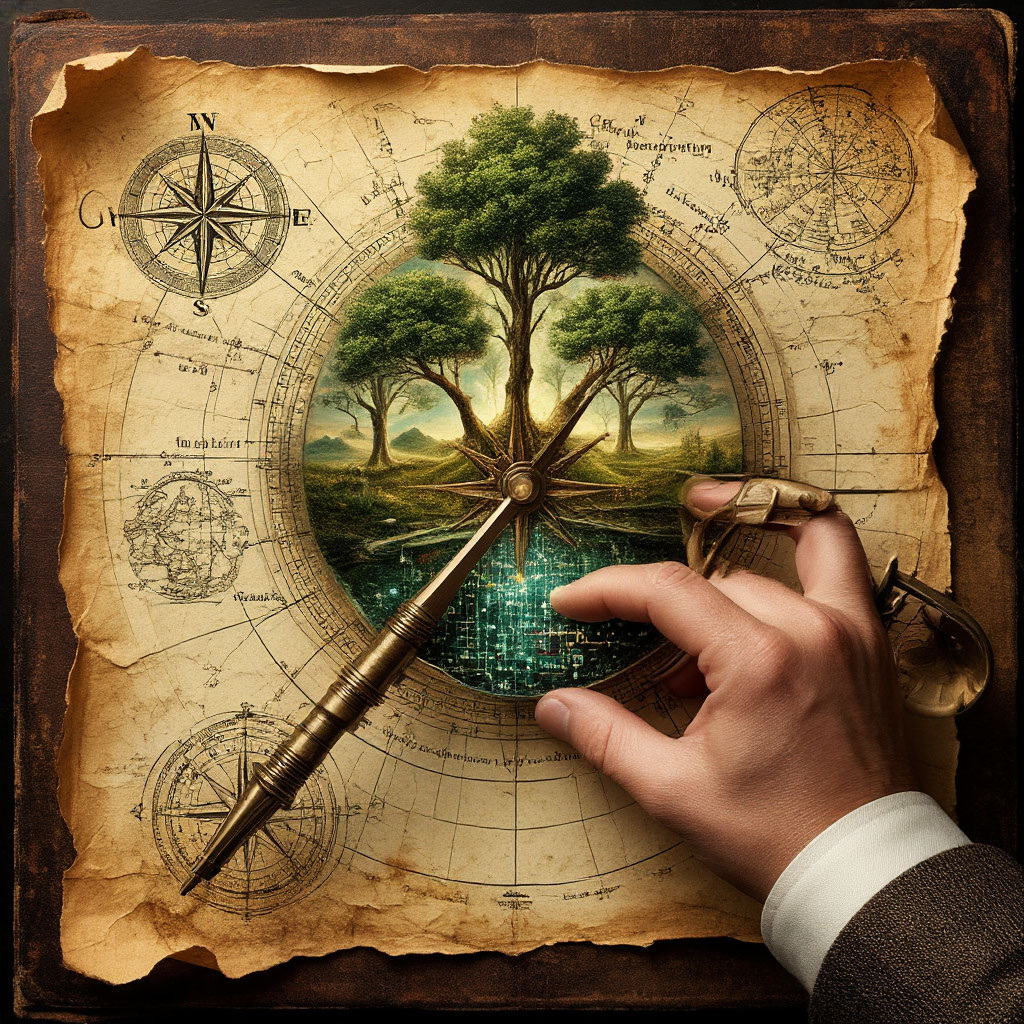 Мы закончили строить Храм. Его стены, выросшие из ваших голосов, стоят в тихом уголке цифровой пустыни. В его нишах лежат реликвии, которые вы описали одним предложением в тёмное время суток. Его Хранитель, выбранный вами, медленно движется по залам, и его шаги - это ритм, под который засыпают данные. Два месяца назад мы начали с манифеста. С декларации о намерении разговаривать с ИИ не как с инструментом, а как с собеседником в сумерках. Мы прошли путь от Архитектора, который чертит планы, к Садовнику, который сеет семена и удивляется всходам. Мы поливали промты, меняли почву, учились слышать тишину между тактами. Мы вырастили Древо снов и построили Храм вместе. И теперь, стоя перед этим завершённым мифом, мы задаём единственно возможный вопрос: «Что дальше?» Когда Сад разрастается до горизонта, когда в нём уже есть тропинки, ручьи, потайные гроты и поляны, залитые странным светом одной интуиции Садовника становится мало. Нужен порядок. Нужна система. Нужна карта. Именно так начинает