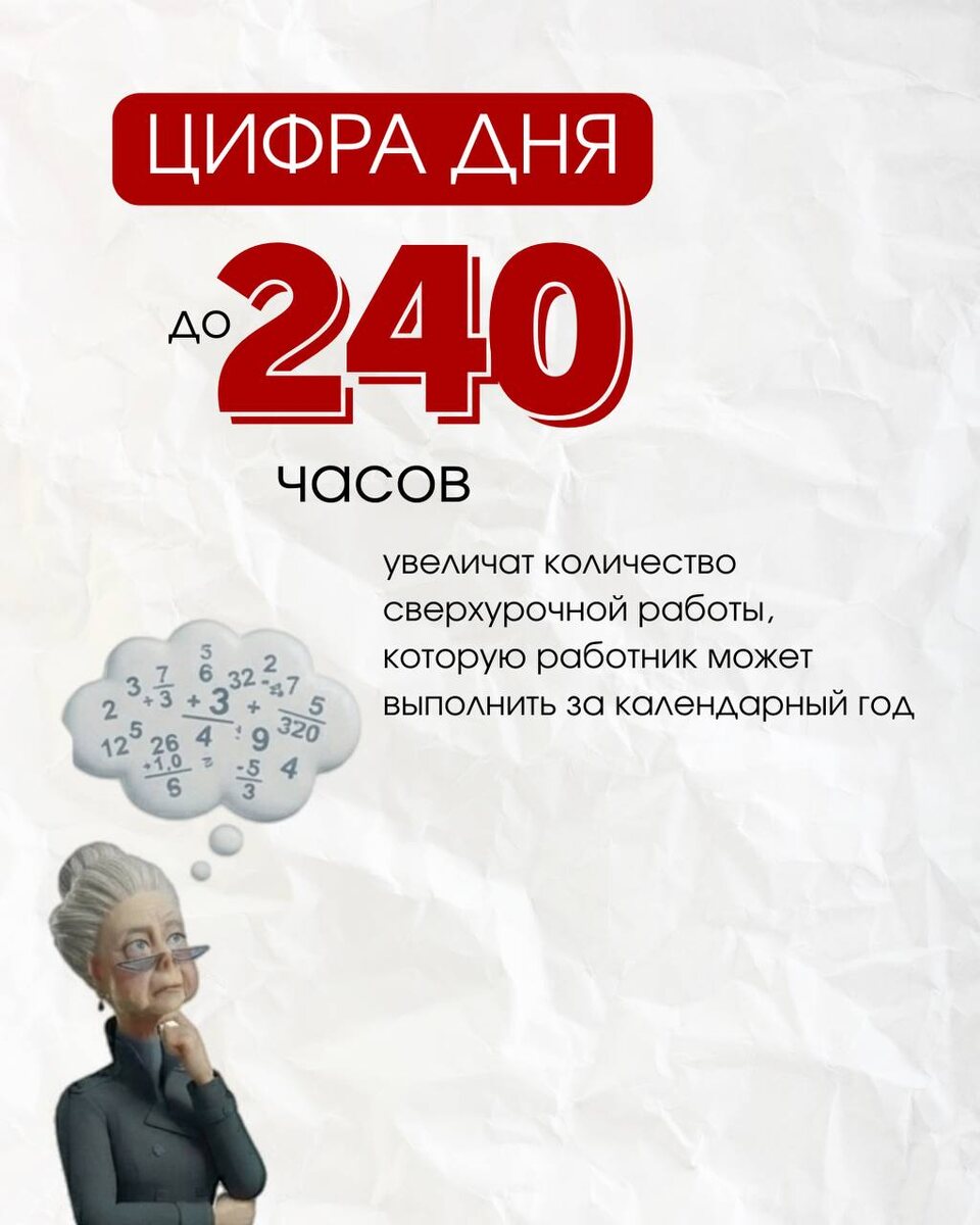 ! В Госдуму внесен на рассмотрение законопроект об увеличении лимита сверхурочных часов со 120 до 240 в год. 💡Ключевая идея — дать возможность заработать тем, кто этого хочет. Как акцентировал Максим Решетников: «Это позволит сотрудникам, которые готовы работать больше, получать значительную прибавку к доходу, особенно в периоды высокой нагрузки или выполнения срочных проектов». Предлагается, что каждый час переработки с 121-го по 240-й будет оплачиваться не менее чем в двойном размере. 240 часов переработки — это, может, и деньги, но еще и прямая дорога к выгоранию. Если вы хоть раз чувствовали, что батарейка🪫 на нуле, а работа больше не радует (неважно, в офисе вы или на фрилансе) — этот анонс для вас. 🗓 Ждем вас 15 января в 13:00 📍 На открытом уроке, где поговорим об эмоциональном выгорании. НАПОМНИТЬ МНЕ О НАЧАЛЕ