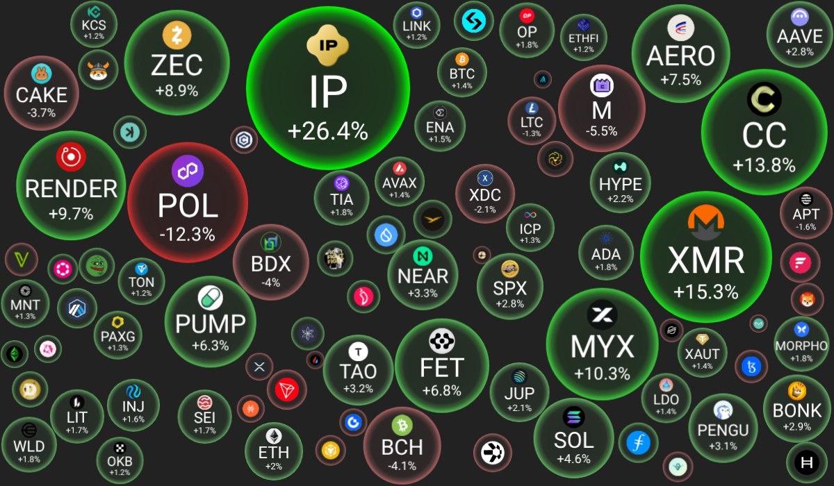 🗓 12.01.2026 09:30 по Москве. 🔗 Посмотреть на сайте 📈 Лидеры роста (из ТОП-100): 🟢 Story (IP): $2.5293 (+26.4%) 🟢 Monero (XMR): $560 (+15.3%) 🟢 Canton Network (CC): $0.1465 (+13.8%) 📉 Лидеры падения (из ТОП-100): 🔴 POL (prev. MATIC) (POL): $0.1541 (-12.3%) 🔴 MemeCore (M): $1.6379 (-5.5%) 🔴 Bitcoin Cash (BCH): $636 (-4.1%) 🔍 Основные метрики: 🟢 Общая капитализация: $3133.09 млрд (+1.30%) 🟢 Общий объем торгов: $76.56 млрд (+71.93%) 🟢 Доминация Bitcoin: 58.57% (+0.09%) 🟢 Доминация Ethereum: 12.15% (+0.09%) 🔴 Индекс страха и жадности: 27 / 100: СТРАХ (-2) 🔴 Индекс Альтсезона: 31 / 100: НЕ АЛЬТКОИН-СЕЗОН (-2) 📖 Интересно почитать: 👉 Лучшие книги о криптовалюте. 😻 Наши сервисы и бонусы: 💰 Cryptoage.com - рассказываем про Блокчейн и Криптовалюты с 2013 года 📈 OKX - кешбэк 20% на комиссии при торговле на спотовом и фьючерсном рынке
