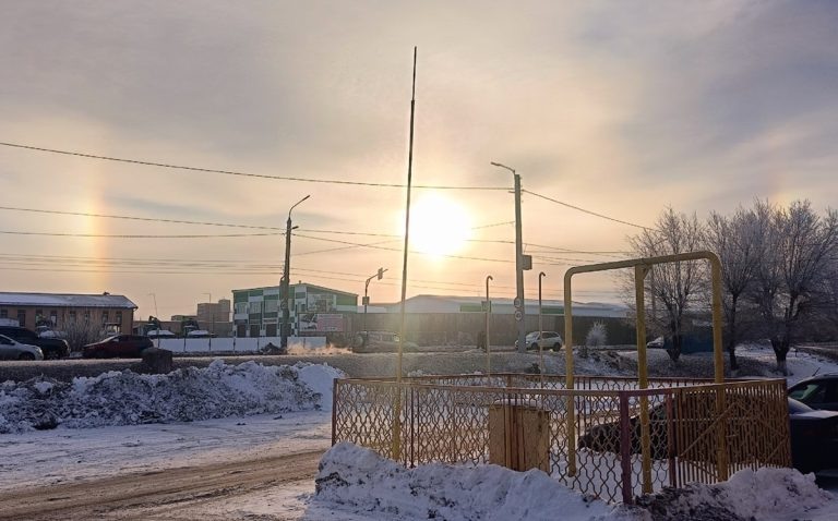 Солнце над Оренбургом обрамила радуга. Впечатляющее оптическое явление — гало наблюдали сегодня, 12 января, жители областного центра. Фотографией гало поделился подписчик «Оренбург Медиа». Также участник сообщества «Смотри на звезды» запечатлел гало на трассе Оренбург — Казань. Гало – это вторичное свечение вокруг источника света. Оно обычно имеет форму круга, чаще неполного. «Радуга» при гало не такая яркая, какой бывает после дождя, но переходы разных цветов вполне заметны. Это явление объясняется присутствием в атмосфере кристаллов льда. Иногда, в морозную погоду, возможно появление гало, образуемое кристаллами льда, взвешенными в атмосфере близко к земной поверхности. В этом случае нижняя часть гало может быть видна на фоне окружающего пейзажа, если солнце находится достаточно низко над горизонтом, — объясняют ученые. Фото: «Оренбург Медиа»