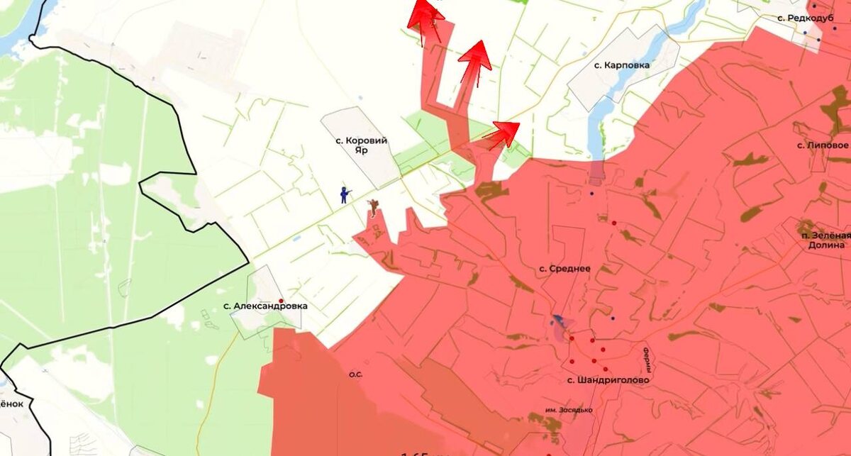 ▫️В ходе продолжительных боев за Редкодуб наши войска освободили село! ▫️Севернее от Карповки наши войска продолжают наступление на Волчий Яр и перерезали основную логистику ВСУ от Карповки до Коровьего Яра, что и послужило освобождению Редкодуба. ▫️Наши войска продолжают наступать на Александровку, штурмовые группы ВС РФ проникают в населённый пункт для закрепления, но говорить о закреплении в самой Александровке еще рано. ▫️В ходе успешных штурмовых действий наши войска расширили контроль территории в Яровой и севернее села с зачисткой лесного массива. ▫️Вдоль Северского Донца продвигаемся в Святогорске, беря под контроль прибрежную зону с укреплениями в заброшенных базах. ▫️Также ведется работа и по Татьяновке, которая расположена на другом берегу Северского Донца. В селе много позиций ВСУ в бывших базах отдыха и пансионатах. ▫️Новоселовка перешла под наш контроль, также продвинулись мы юго-западнее и юго-восточнее села с охватом лесных зон. ▫️В районе Дробышево продолжаются