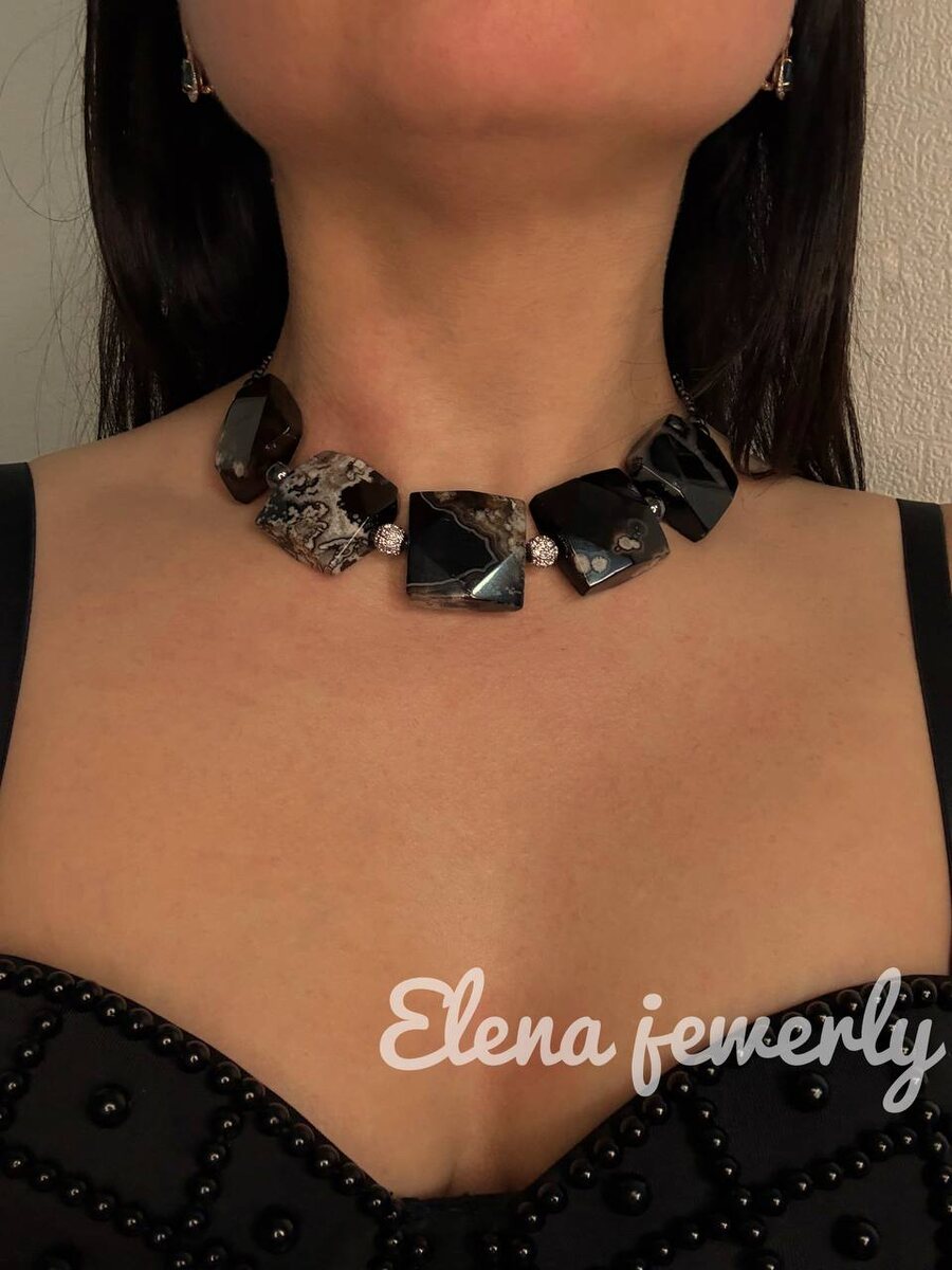 ✨ Колье, которое невозможно повторить. Потому что природа не делает копий. Это колье создано из крупного натурального агата и гематита — двух камней, которые усиливают не только образ, но и внутреннее состояние женщины. ✨Агат — камень гармонии и защиты Каждый камень имеет свой уникальный природный рисунок, как отпечаток пальца. Ни один агат не повторяет другой — значит, ваше колье будет единственным в мире. Агат помогает: • сохранять внутреннее спокойствие • усиливать женскую привлекательность • притягивать стабильность и благополучие • защищать от эмоциональных перегрузок ✨ Гематит — камень силы и уверенности Он заземляет, усиливает харизму, помогает чувствовать опору в себе и принимать решения без сомнений. В сочетании эти камни создают украшение с характером: мягкая сила + уверенная энергия. 💎 Колье выглядит дорого, статусно и выразительно Оно сразу притягивает взгляд, подчёркивает шею, зону декольте и вкус своей владелицы. 📿 Кому подойдёт это колье? • женщинам, которые ценят инди