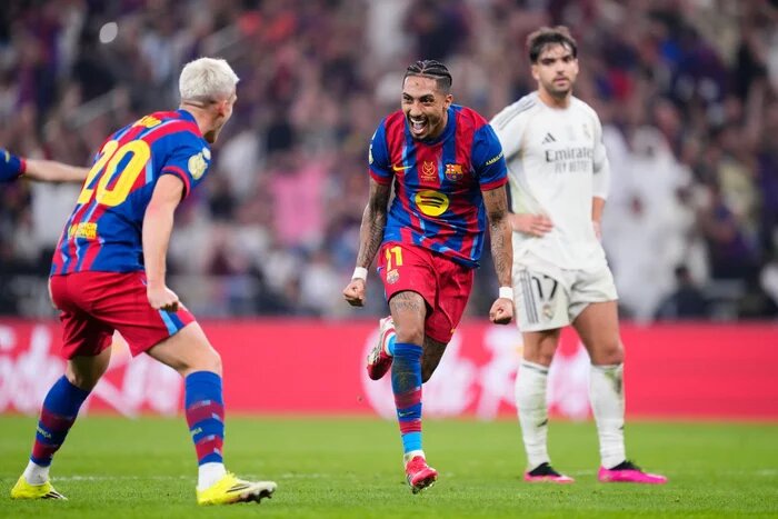 Матч завершился со счётом 3:2 В ночь с 11 на 12 января состоялся финальный матч Суперкубка Испании, в котором встречались «Барселона» и мадридский «Реал». Команды играли на стадионе «Кинг Абдулла Спортс Сити» в Джидде (Саудовская Аравия). Победу со счётом 3:2 праздновали «сине-гранатовые». На 36-й минуте бразилец Рафинья вывел «Барселону» вперёд. На 45+2-й минуте вингер «Реала» Винисиус Жуниор сравнял счёт. На 45+4-й минуте нападающий Роберт Левандовски забил второй гол каталонцев. На 45+6-й минуте Гонсало Гарсия вновь сделал счёт равным. На 73-й минуте Рафинья оформил дубль. На 90+1-й минуте полузащитник каталонцев Френки де Йонг получил красную карточку. Но, счёт после этого был неизменным. Таким образом, «Барселона» в 16-й раз в истории завоевала Суперкубок страны. В финале минувшего розыгрыша «каталонцы» победили «Реал» со счётом 5:2.