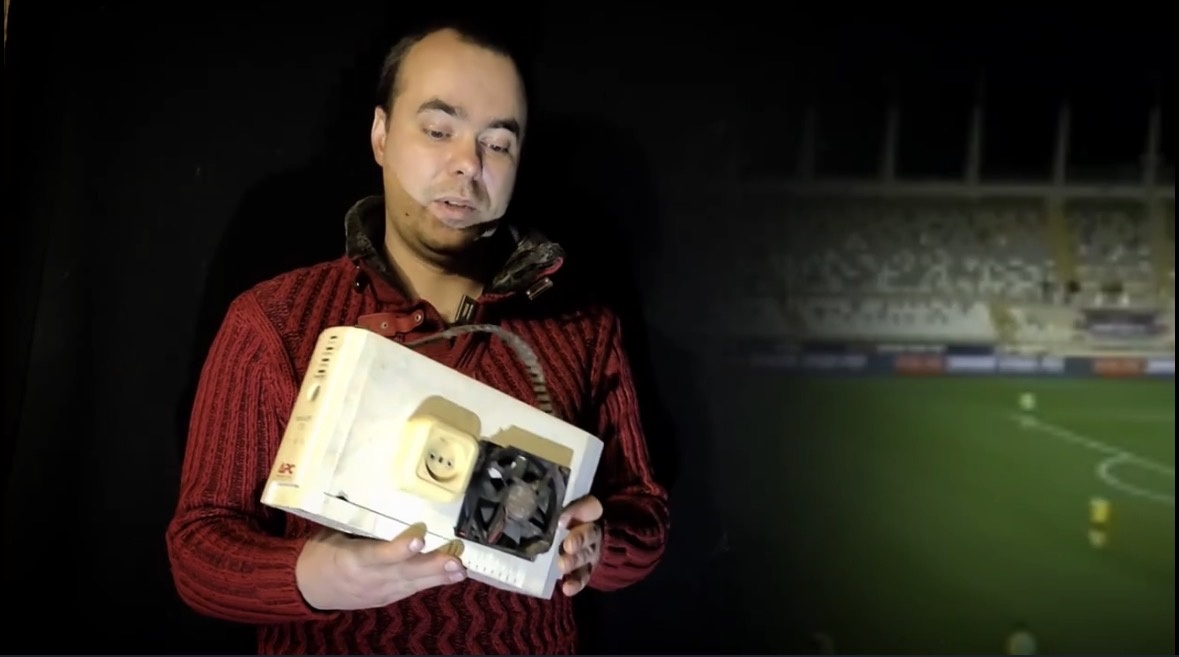 • Друзья используют бесперебойное питание от компьютера для просмотра футбола.