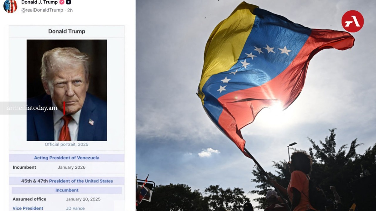 ԱՄՆ նախագահ Դոնալդ Թրամփն իրեն հայտարարել է Վենեսուելայի նախագահի պաշտոնակատար։ Նա հրապարակել է սքրինշոթ, որտեղ նշված է, թե իբր ինքը Վենեսուելայի նախագահի պաշտոնակատարն է։ Truth Social-ի սքրինշոթի համաձայն՝ Թրամփն այդ պաշտոնն «ստանձնել է» 2026 թվականի հունվարին։ ԱՄՆ-ն հունվարի 3-ին հարվածներ էր հասցրել Վենեսուելային, այդ թվում՝ մայրաքաղաք Կարակասին: Գործողության ընթացքում ԱՄՆ հատուկջոկատայինները ձերբակալել էին նախագահ Նիկոլաս Մադուրոյին և նրա կնոջը՝ Սիլյա Ֆլորեսին, նրանց դուրս էին բերել երկրից ու ԱՄՆ-ում մեղադրանք առաջադրել: Վենեսուելայի փոխնախագահ Դելսի Ռոդրիգեսը հունվարի 6-ին ստանձնել էր երկրի նախագահի պաշտոնակատարի պարտականությունները: