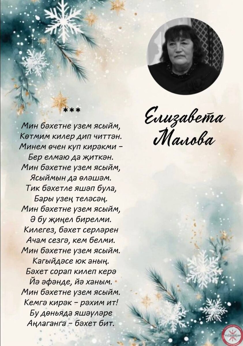 Шагыйрә Елизавета Малованың иҗаты хисчән, ихлас, самими, үзенә генә хас тирән мәгънәле һәм шул ук вакытта гади дә📝