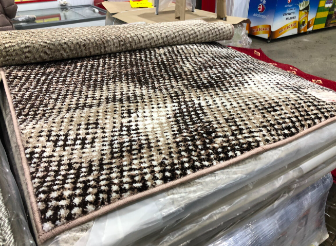 В продаже имеются ковры белорусского производства. Например, ковер «Эспрессо» размером 100×150 см. Он с низким ворсом, выполнен на джутовой основе, смотрится аккуратно и практичен в уходе. Стоимость — 1100 рублей.