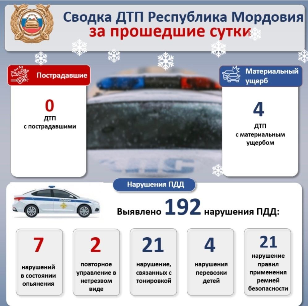 👮♀️ Обстановка с аварийностью на дорогах Мордовии и нарушениями ПДД за 11 января 2026 года