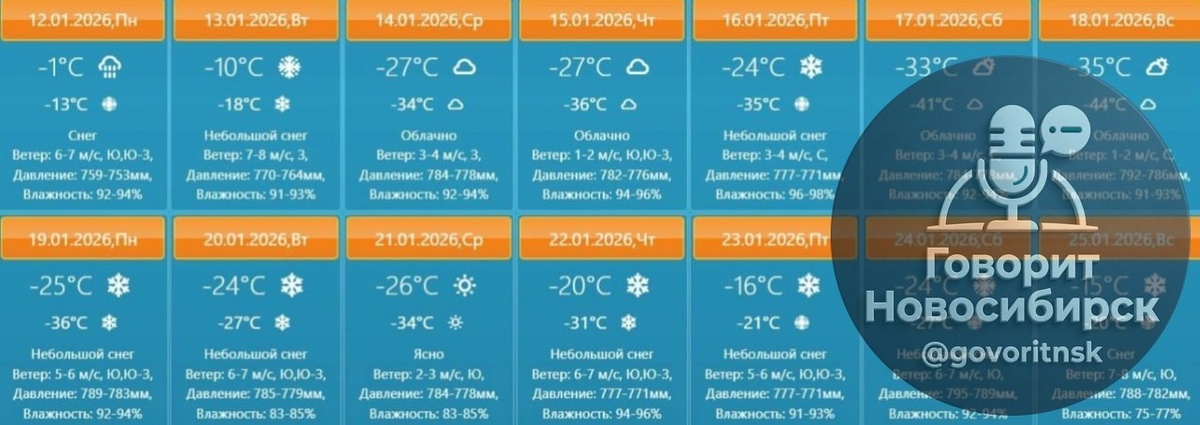 ΠΎΠ»ΠΎΠ΄Π°Π½ΠΈΠ΅ Π΄ΠΎ -27Β°C Π΄Π½ΡΠΌ ΠΈ -34Β°C Π½ΠΎΡΡΡ. Π ΡΡΠ±Π±ΠΎΡΡ, 17 ΡΠ½Π²Π°ΡΡ, ΡΠ΅ΡΠ²ΠΈΡ ΠΏΡΠΎΠ³Π½ΠΎΠ·ΠΈΡΡΠ΅Ρ Π½ΠΎΡΠ½ΠΎΠΉ ΠΌΠΎΡΠΎΠ· Π² -41Β°C, Π° Π² Π²ΠΎΡΠΊΡΠ΅ΡΠ΅Π½ΡΠ΅ Π΄ΠΎ -44Β°C. Π£ΡΠ΅ΠΏΠ»ΡΠ΅ΠΌΡΡ ΠΈ Π½Π΅ Π·Π°ΠΌΠ΅ΡΠ·Π°Π΅ΠΌ π₯Ά ΠΠΎΠ²ΠΎΡΠΈΡ ΠΠΎΠ²ΠΎΡΠΈΠ±ΠΈΡΡΠΊ