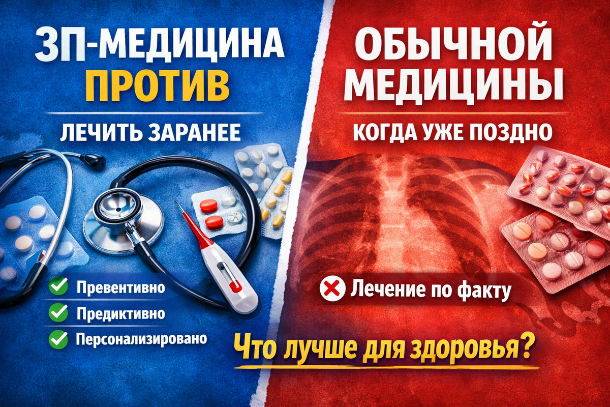 Нет болезни — значит, вы «здоровы», и к врачу идти не нужно. Но мир меняется. И сегодня всё больше говорят о 3П-медицине — подходе, который в разы эффективнее привычной модели. Почему? Давайте разберёмся. Обычная (классическая) медицина, к которой мы привыкли, в большинстве случаев: Часто человек годами живёт с усталостью, скачками давления, проблемами с пищеварением, сном, гормонами — но формально он «здоров». Анализы в пределах нормы, диагнозов нет, значит и лечить нечего. А потом внезапно: И вот тогда начинается активное лечение. Интересно, что идея профилактики — не новая. В Советском Союзе прекрасно осознавали: