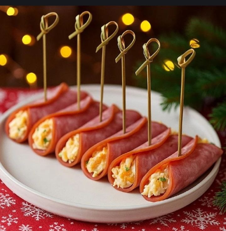 Простая и эффектная закуска, которая идеально подойдёт для праздничного стола или быстрого перекуса. Готовится за считанные минуты, а выглядит — как ресторанное блюдо! ИНГРЕДИЕНТЫ: ✅ Ветчина (тонко нарезанная) — 8–10 ломтиков ✅ Яйца варёные — 4 шт. ✅ Твёрдый сыр — 70 г ✅ Морковь (отварная или свежая) — 1 шт. ✅ Майонез — 3 ст. л. ✅ Чеснок — 1 зубчик ✅ Зелень — по вкусу ✅ Соль, перец — по вкусу ✅ Шпажки — для фиксации ПРИГОТОВЛЕНИЕ: 1. Яйца, сыр и морковь натрите на мелкой тёрке. 2. Добавьте майонез, измельчённый чеснок, зелень, соль и перец. Хорошо перемешайте. 3. На край каждого ломтика ветчины выложите 1–1,5 ч. ложки начинки. 4. Аккуратно сверните рулетиком и закрепите шпажкой. 5. Выложите на тарелку и охладите перед подачей. СОВЕТЫ: • Для пикантности можно добавить немного горчицы или щепотку паприки в начинку. • Если хотите более лёгкий вариант — замените майонез на йогурт или сметану. • Подавайте рулетики на листьях салата, украсив зеленью или маслинами. ПРИЯТНОГО АППЕТИТА! 🧡