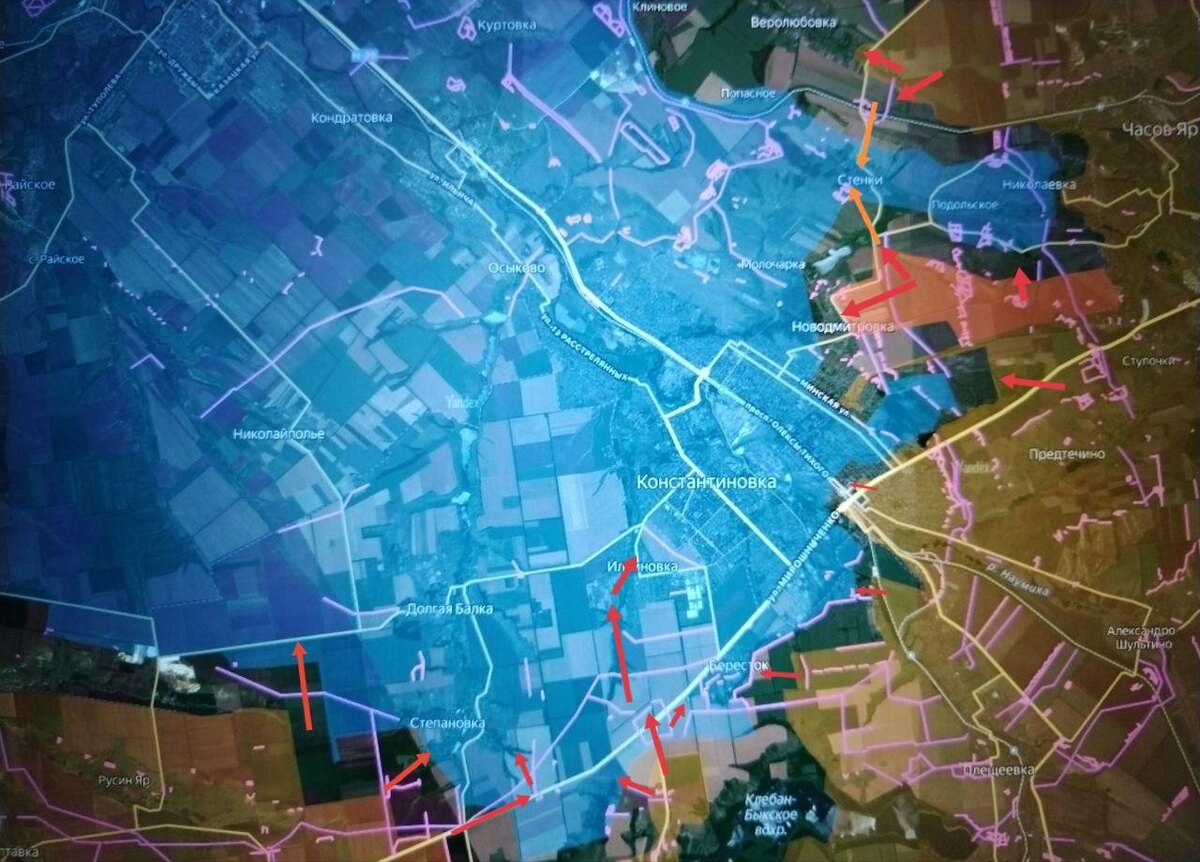 Освобождение Краматорска и Славянска российской армией – дело нескольких месяцев. Об этом на канале журналиста-иноагента Александра Шелеста заявил экс-советник Зе-офиса Алексей Арестович, признанный в РФ экстремистом, передает корреспондент «ПолитНавигатора». «В Константиновке российские войска уже устойчиво больше недели находятся. Это разрозненные группы, но их уже не выбить, и падение города не за горами, а это уже там только Дружковка, Краматорск, Славянск с южного направления, трасса перерезается от Покровска.Еще будет вопрос, куда пойдут российские силы от Покровска, не двинутся ли они на север, окружая Славянск и Краматорск чисто с востока.Северск, Часов Яр – это одно оперативное направление, в котором наши войска удерживают оборону, но там есть явно успехи российских сил. И они, так или иначе, формируют оперативные балконы с юга и с востока для проведения Краматорско-Славянской наступательной операции.Это не быстрое дело, это только формирующие операции, и это вопрос месяцев пр