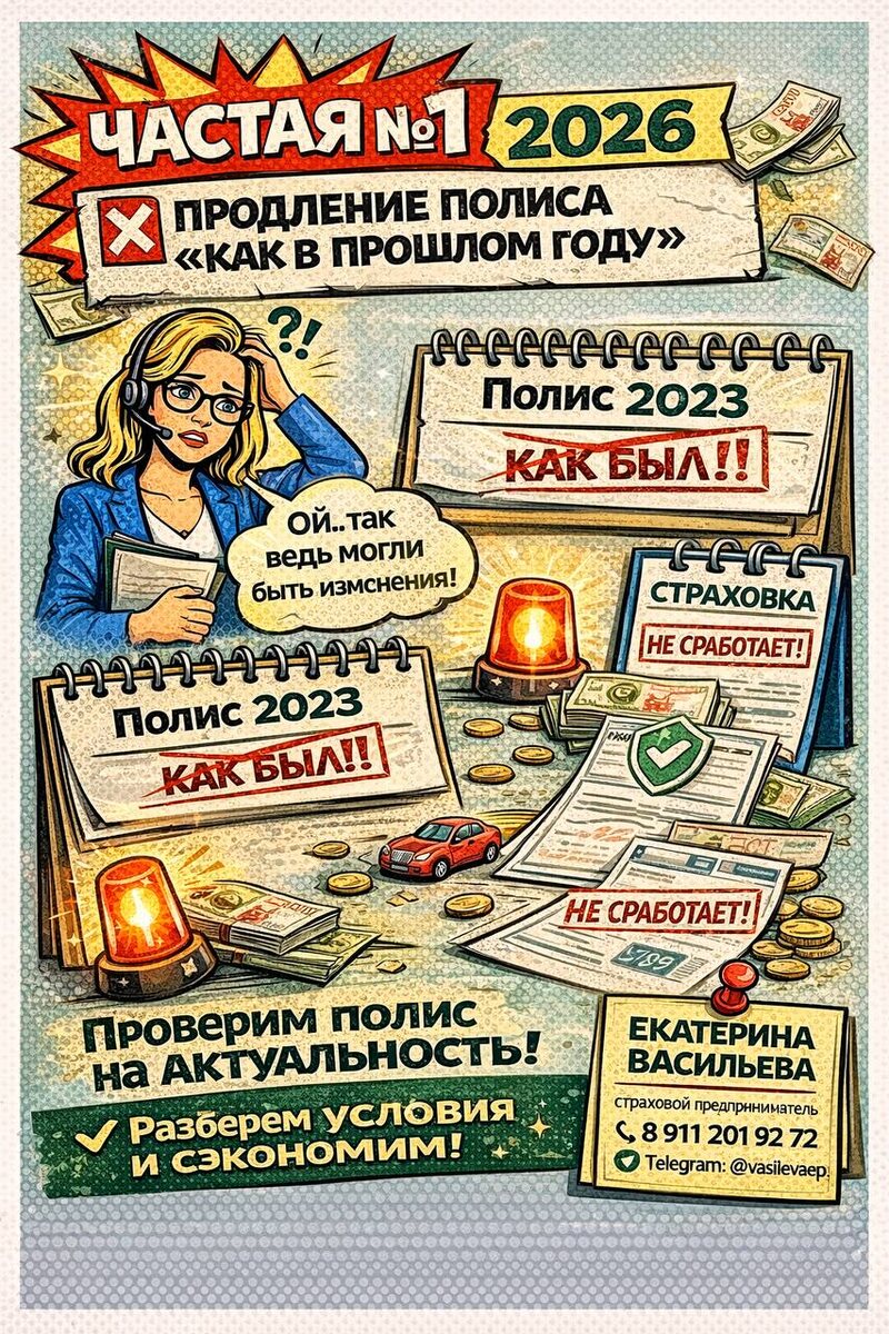 » Очень часто слышу фразу: «Давайте просто продлим, как было». И именно здесь начинаются проблемы 👇 Почему это ошибка? Страхование — не подписка на музыку. Условия меняются каждый год, даже если кажется, что «ничего не изменилось». Что могло поменяться: — тарифы и коэффициенты — правила выплат — список рисков и исключений — требования банков (особенно по ипотеке) — ваша ситуация: доход, имущество, авто, семья 👉 Полис «как в прошлом году» может: — стоить дороже рынка — не подходить под требования банка — не сработать при страховом случае Как правильно? ✔️ Каждый год — перепроверка условий ✔️ Сравнение предложений разных компаний ✔️ Адаптация полиса под текущие задачи ✔️ Экономия без потери защиты 💬 Моя работа — не просто продлить полис, а проверить, защитить и сэкономить ваши деньги. Если срок страховки подходит к концу — напишите заранее. Разберём ваш полис и подберём лучший вариант 👍 Екатерина Васильева страховой предприниматель нового поколения 📞 8 911 201 92 72 💬 Teleg