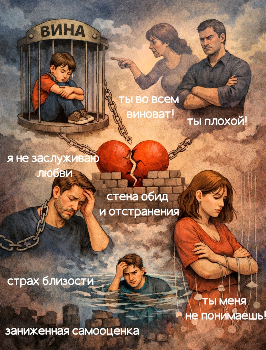 ✴️✴️✴️ Как детское чувство вины мешает взрослым отношениям Часто в работе я говорю о чувстве вины, которое сформировалось в детстве. Его воспитывали родители или другие значимые взрослые. Мы выросли, стали взрослыми, а чувство вины и обиды никуда не делись. Они идут рядом всю жизнь, буквально рука об руку Обычно это происходит там, где любовь была условной. «Я не люблю плохого мальчика». «Я люблю только хорошую девочку» Так с помощью манипуляций от ребенка получали нужное поведение. А ребенок делал простой вывод: со мной что-то не так, если я не соответствую требованиям. Чтобы меня любили, нужно быть хорошим 🙂 Я не про обвинения. Родители делали как могли и как умели. Но последствия для психики остаются Когда два взрослых человека с такими установками встречаются и пытаются построить отношения, начинается проекция. Каждый приносит свое чувство вины в контакт. Появляется стремление быть хорошей, удобной, правильной. Не показывать уязвимость, не проявлять «плохие» стороны, которые