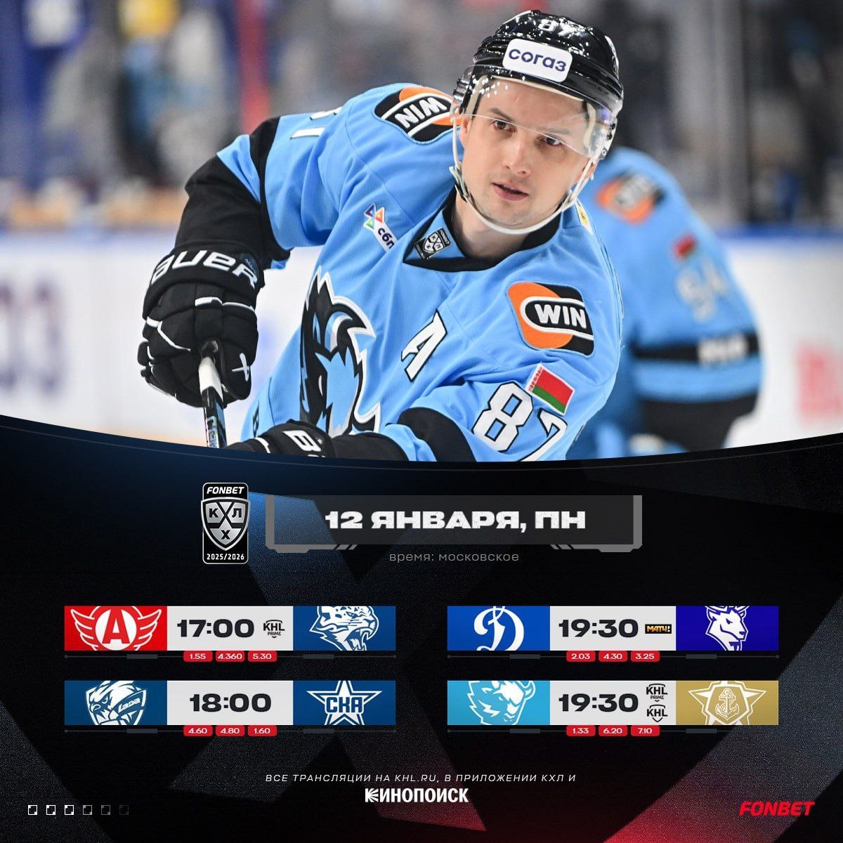 🔥🇷🇺 Расписание игрового дня в КХЛ!