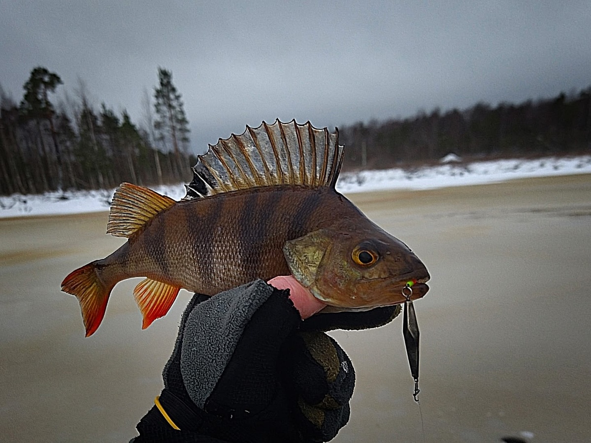 Обходите по очереди все лунки, в каждой играете блесной или мормышкой по 3-5 минут. Имейте в виду, что блесенка привлекает окуня со значительно большего расстояния, чем мормышка. Но если окунь капризничает, то поймать его на мормышку проще, чем на блесну. Вокруг блесны он может собраться, но не клевать.