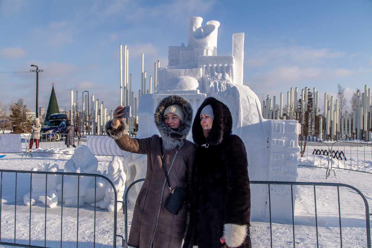 В Новосибирске проходит фестиваль снежных скульптур — полюбоваться на недолговечные шедевры можно в парке «Арена». В этом году приз зрительских симпатий (проходило онлайн-голосование) достался скульпторам из города Кызыл (Республика Тыва). Они создали скульптуру «Лебединое озеро». Почему именно такую? По словам одного из авторов Доржа Никитина, балет — один из важных проводников в мир культуры, а оперный театр — символ Новосибирска. Погода заставила создателей изменить планы: по замыслу, венчать скульптуру должна была балерина в третьей позиции — с поднятыми вверх руками. Однако плюсовые температуры растопили снег. Пришлось делать две маленькие фигурки танцоров балета. Абсолютным победителем — обладателем Гран-при фестиваля снежных скульптур и сертификата на 150 тысяч рублей — стала якутская команда «Таптал» — Аркадий и Дарья Сивцевы с работой «Долина Туймаады». Снежные скульпторы изобразили якутскую семью, где все играют на народных инструментах, традиционный сосуд чороон, архитектур