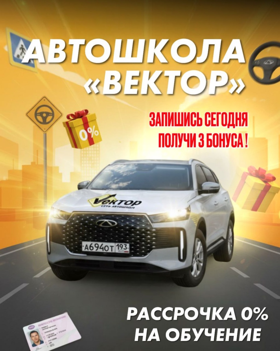 ! Начните обучение в автошколе «ВЕКТОР» зимой и встретьте весну с правами 🪪 Воплотите свои мечты в реальность с АКЦИЕЙ ДЕНЬ В ДЕНЬ 🌟 ❗️Запишитесь сегодня и получите 3 зимних бонуса 🎁 1️⃣ Первое занятие бесплатно. 2️⃣ Рассрочка 0% на обучение 3️⃣ Эксклюзивный мастер-класс ✅ Ваши выгоды: Обучение в сложных зимних условиях = уверенность за рулём💪🏻 · ОБУЧЕНИЕ ONLINE или В ЛЮБОМ ФИЛИАЛЕ 📍 Успевайте записаться — мест мало! Звоните: 8(861)944-66-00 Или на сайте: https://vector23.ru Не откладывайте свободу. Начните зиму с «ВЕКТОРОМ»! 🚗