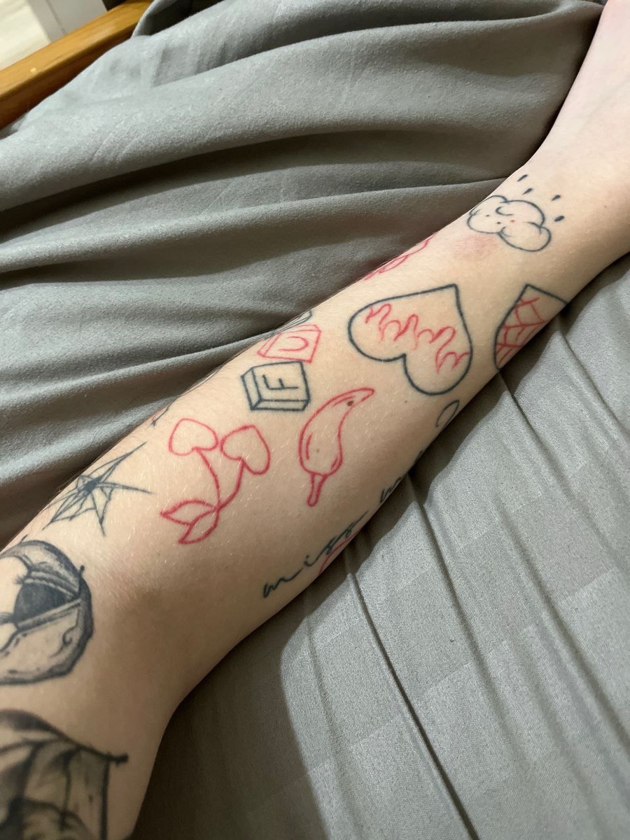 Была задача перекрыть неудачные татуировки от другого мастера. Клиент хотел перекрыть черными узорами. В итоге решили сделать свой уникальный вариант и нарисовали эскиз от руки. Вот такой результат.