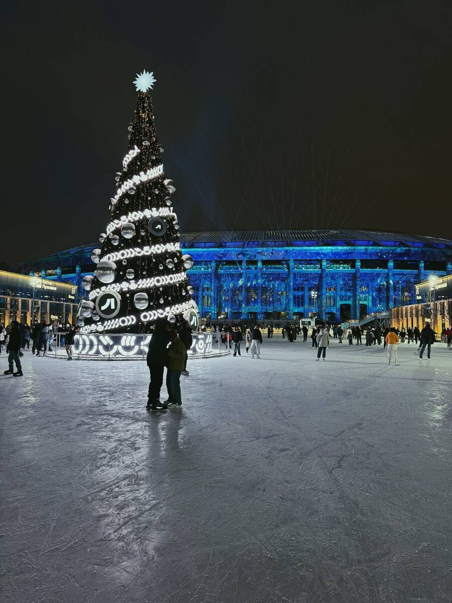 Единственный в России мультимедийный каток с 24 иммерсивными инсталляциями, световыми шоу и ледовой площадью в 16 000 м². Звучит как зимняя сказка. Так ли это на самом деле? Рассказываю о своём визите: от восторга до разочарования. Чтобы не запутаться, запомните: Что есть внутри каждого павильона? 🎁 Лайфхак: Если берёте коньки на прокат, на первом этаже вам дадут 1 коин — его можно использовать в игровом автомате и попытать удачу. 🍽️ Где перекусить? По периметру катка — множество ресторанов и кафе. Лучший вид — из заведений, расположенных рядом с центральными павильонами. Здесь делают упор на технологичность. Это не просто лёд, а целое иммерсивное шоу. Вот главные локации: 🎄 16-метровая цифровая ёлка в центре. 🏟️ Вечернее шоу на фасаде Лужников (смотреть на главной площади). ⚡ «Куб энергии» — интерактивная аудио-инсталляция. 🌲 Дорожки с украшенными деревьями на аллеях. Кататься можно и по огромной центральной площадке, и по узким извилистым тропинкам среди подсветки. Атмосфера и п