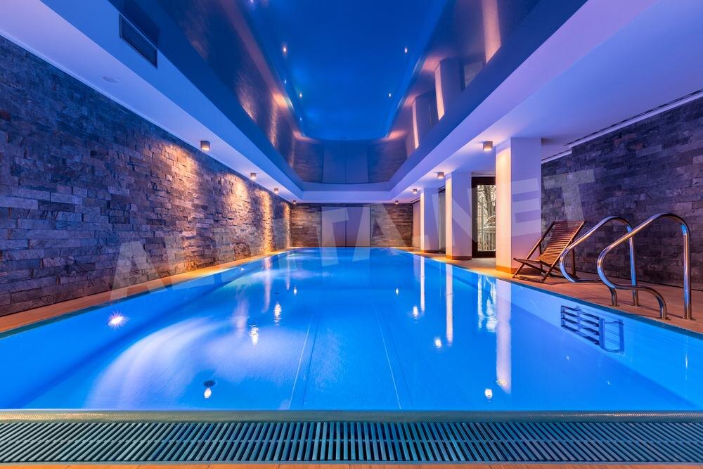 Элитный спа-центр площадью 2000 м² включает бассейны разных типов, банный комплекс нового поколения, фитнес-зону и косметологическую студию. Инфраструктура ориентирована на спокойный отдых без детей.