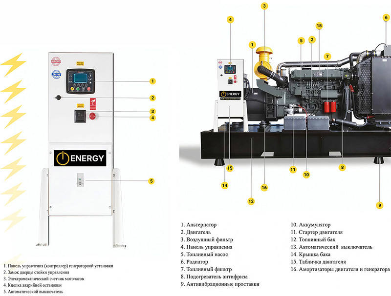 Конструктивно и функционально электростанция состоит из следующих компонентов.