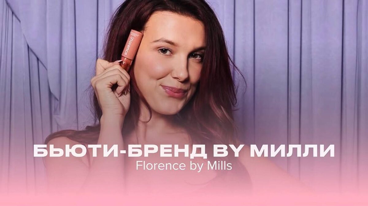 бьюти-бренд?🤩 Florence by Mills существует с 2019 года и назван в честь ее прабабушки. Бренд создан для поколения Z – это чистая веганская косметика, которая не тестируется на животных и придумана для того, чтобы просто кайфовать от ухода за собой. Милли делает огромную ставку на визуал, поэтому самые вирусные банки тут – это переливающаяся фиолетовая маска-пленка и милые пимлпатчи. Все упаковки сделаны так, чтобы их хотелось сфотографировать! Что по ценам? Это точно не бюджет, но и не тяжелый люкс. Готовьтесь отдать примерно 15-30 долларов за средство В общем, это переходный этап от детской косметики к взрослому уходу, так что платим мы тут больше за имя актрисы и приятный вайб, чем за сложные активы)