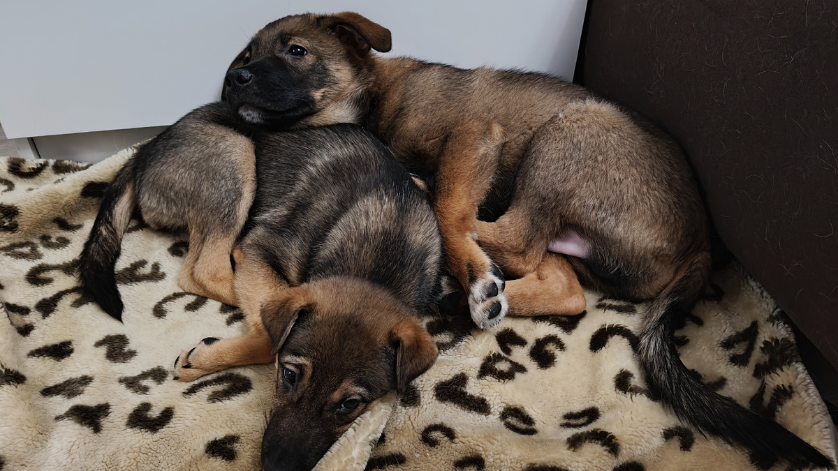 Ранее: у нас уже есть полугодовалый щенок. 1 января к нам привезли ещё двоих — найденных на улице. По видео с регистратора видно: двое людей привязали щенков к дереву и ушли. Мы не смогли пройти мимо.