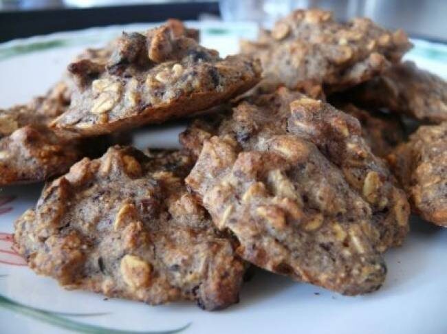 Добавим приготовленную молочно-банановую смесь в овсяную массу, тщательно перемешаем и выложим при помощи ложки в виде печенья на застеленный бумагой противень. Поставим в нагретую духовку и выпекаем при 180 градусах до готовности.