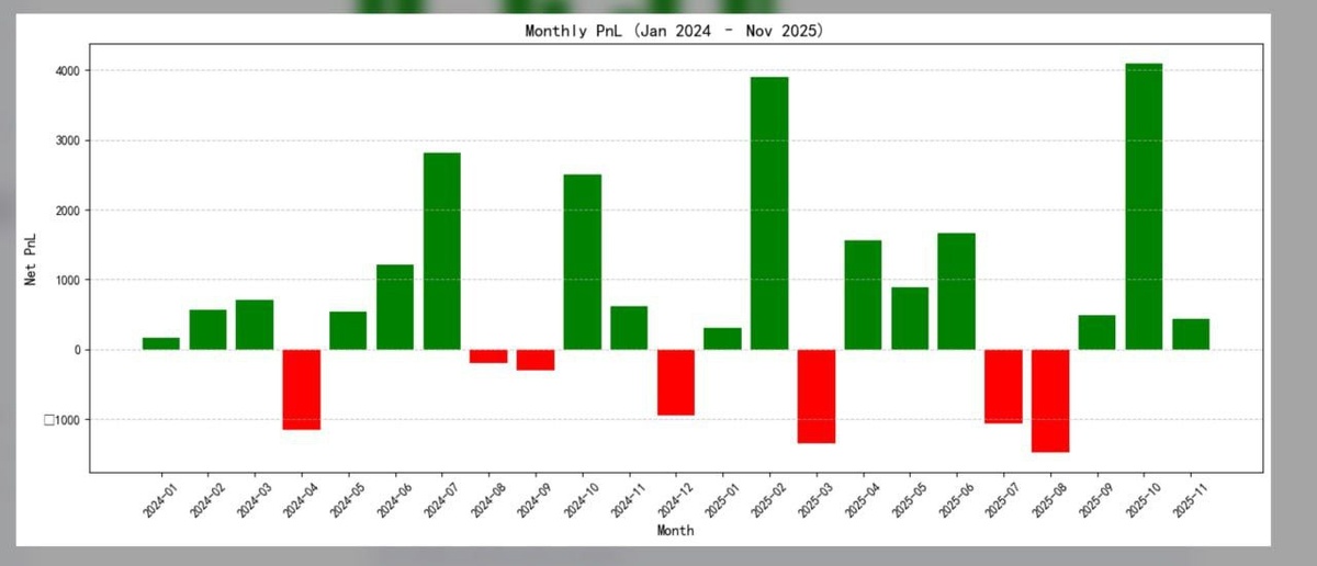 Для того чтобы результат был наилучшим вы должны открывать размер позиции такой, какой указан. Ордера ставить там, где указано. Это критически важно. При этом учитывая тесты вы можете не ограничивать себя количеством открытых позиций в рынке. Вот данные бектеста за 2024-2025 год, который вчера провели в прямом эфире.