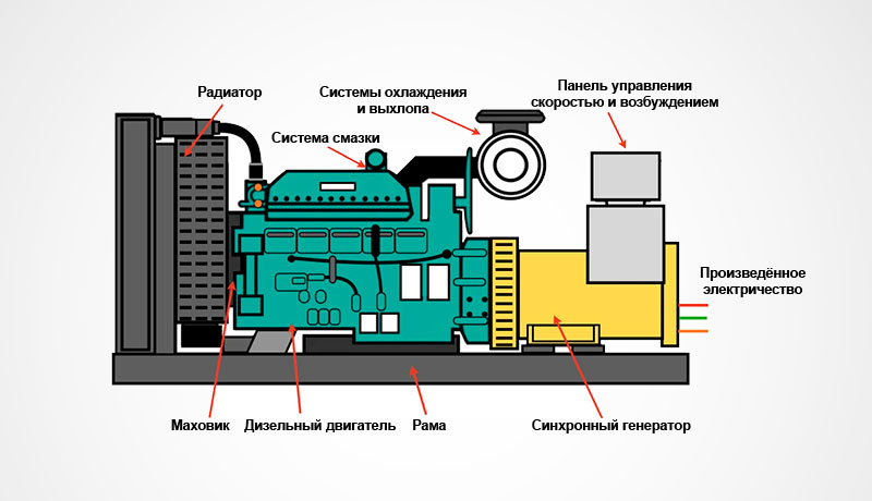 Эффективно работает дизельный генератор только при слаженном взаимодействии всех «шестеренок и винтиков» механизма. Рассмотрим его ключевые системы.