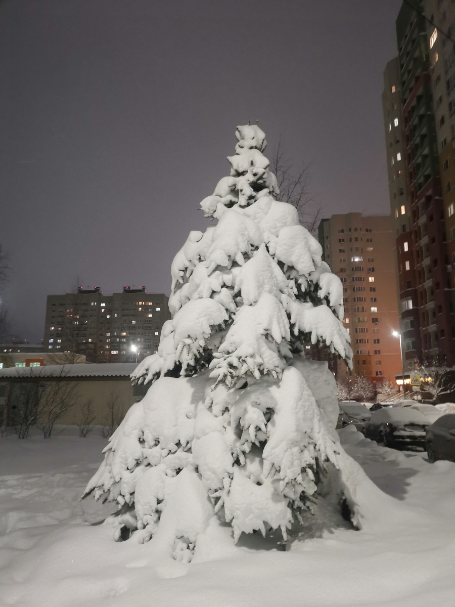 Первая моя мысль была "только бы всё это выпрямилось". Я не сталкивалась раньше с таким снегом, в прошлом году у нас его не было, даже в теплицу нечего было накидать, когда мы там с папой копали, думала, что задохнусь от пыли сухой земли.